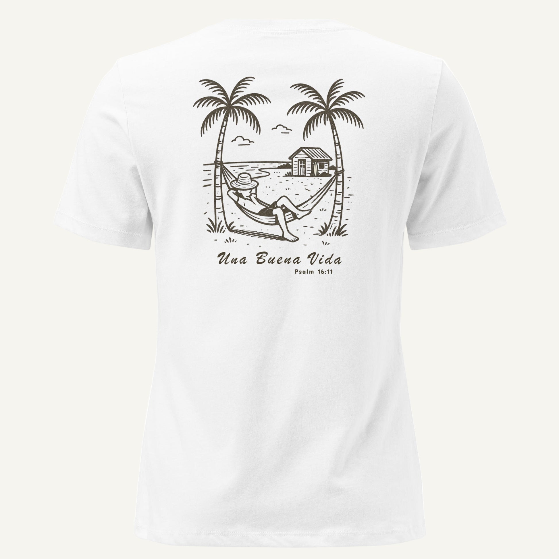 Life has simple pleasures—rest, laughter, moments of peace—that give us joy. But even those good gifts point to something greater. Inspired by Psalm 16:11 — “You make known to me the path of life; you will fill me with joy in your presence, with eternal pleasures at your right hand.” The depiction of a person on a hammock napping under palms at the beach paints a picture most would call “a good life”—and it truly is. Yet this tee is a reminder that an even greater joy and deeper pleasure are found in a life devoted to God. Life with Him is the truest good life—better, richer, and more lasting than anything we could ever dream up on our own.